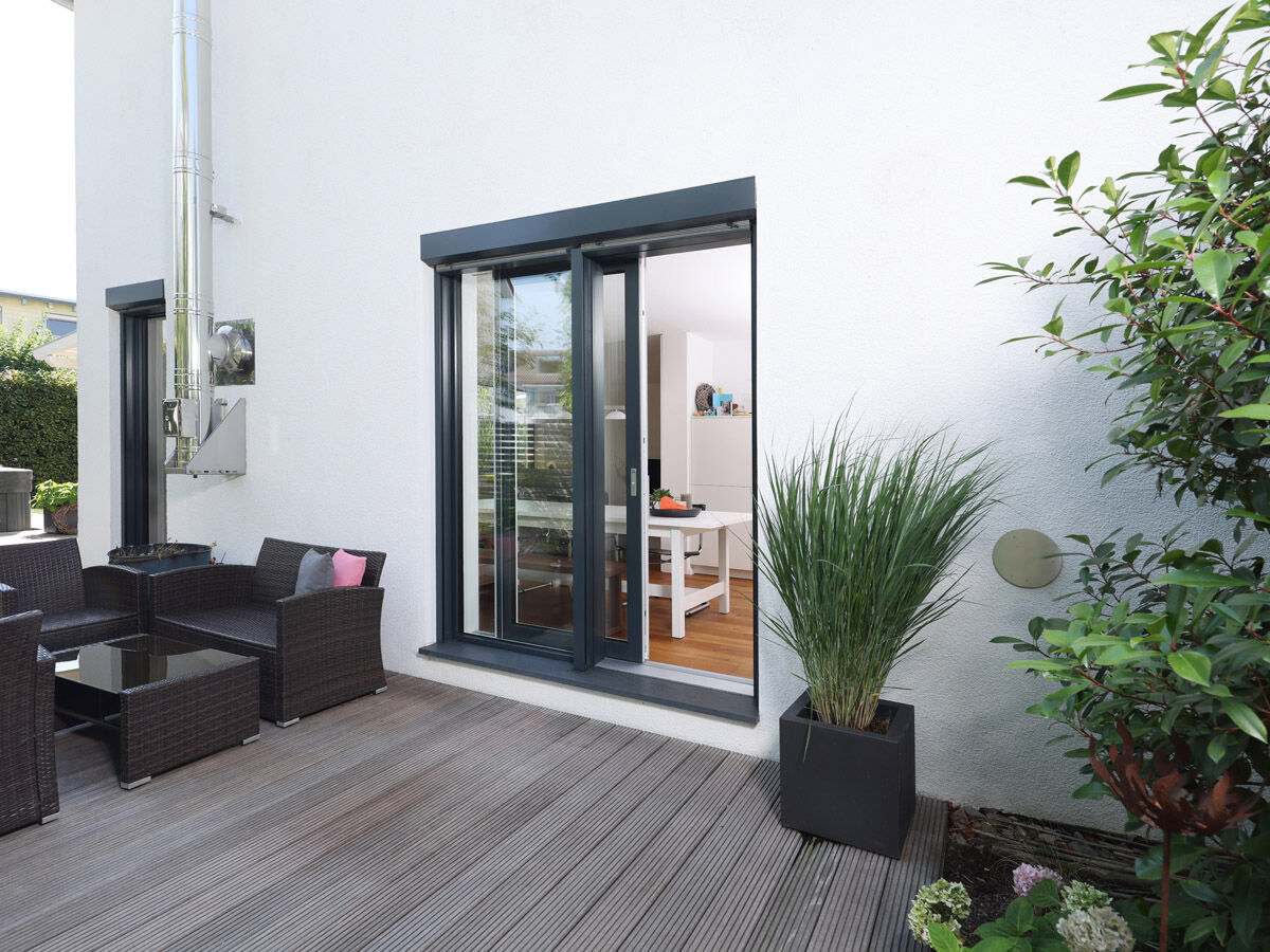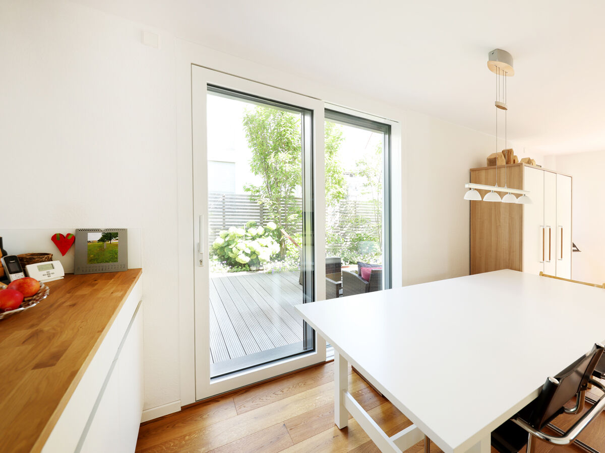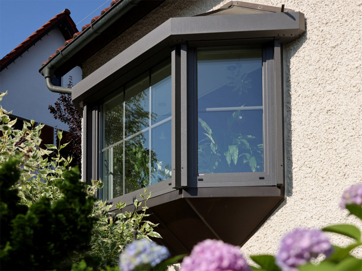 Viele unserer Kunden favorisieren Kunststoff als Rahmenmaterial. Die Vorteile von Kunststoff-Fenstern liegen klar auf der Hand. Es ist ein pflegeleichtes Rahmenmaterial, besitzt sehr gute Wärmedämmeigenschaften und ist im Vergleich zu anderen Rahmenmaterialien deutlich kostengünstiger. Die sogenannte Aluminium-Vorsatzschale macht aus unseren Kunststoff-Fenstern ein Kunststoff-Aluminium-Fenster. Durch diese ist eine farbliche Gestaltung deutlich hochwertiger und nachhaltiger umzusetzen als beispielsweise bei reinen Kunststoff-Fenstern. Die pulverbeschichtete Oberfläche ist langfristig lichtecht und beugt dem Verzug vor. Zudem ist sie besonders leicht zu reinigen und verschmutzt nicht zunehmend stärker. Da die Aluminium-Vorsatzschale außen den Kunststoff komplett verdeckt, wird dieser zusätzlich vor UV-Strahlung geschützt.
